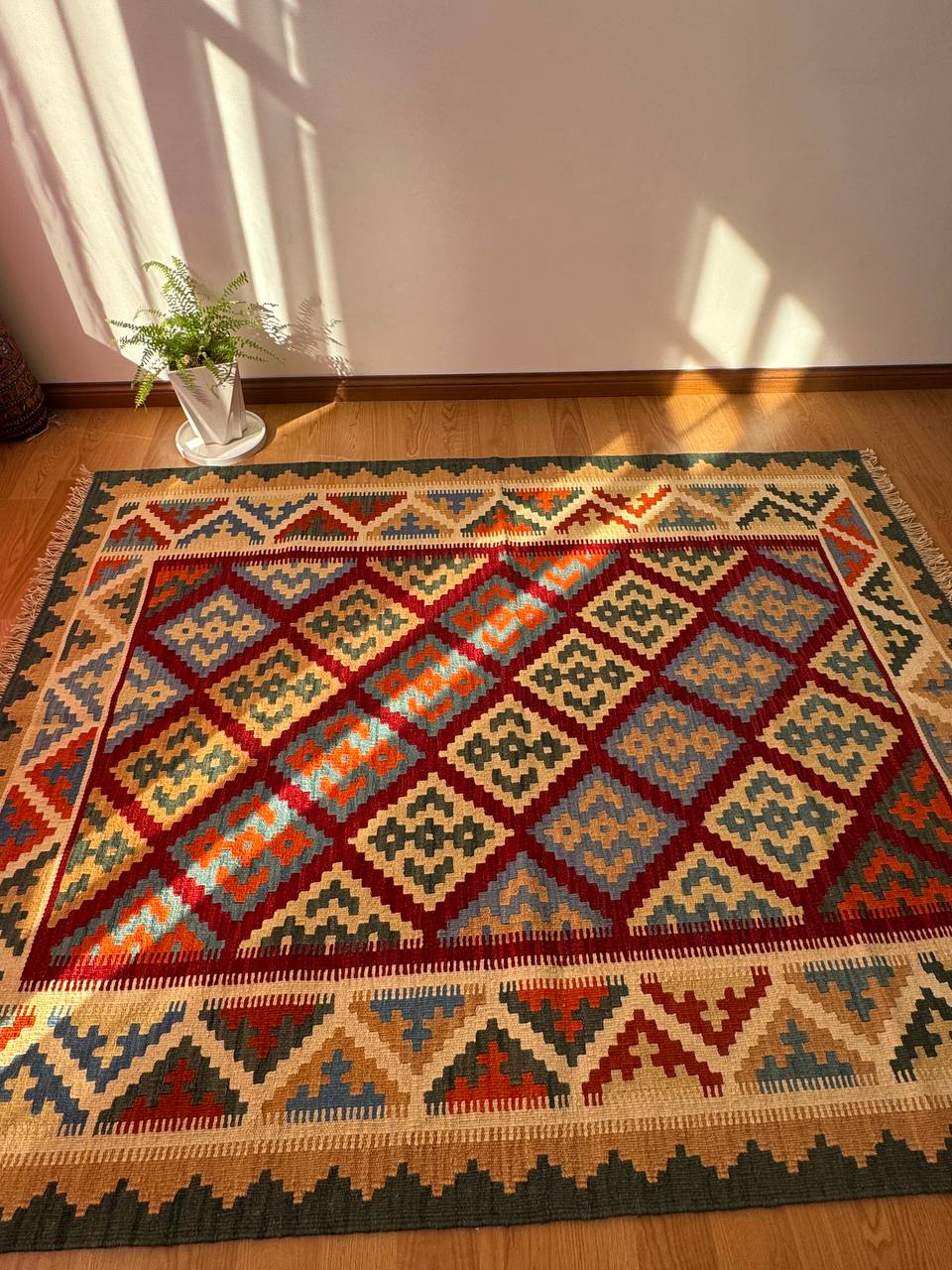 گلیم دورو دستبافت یک و نیم متری 1584